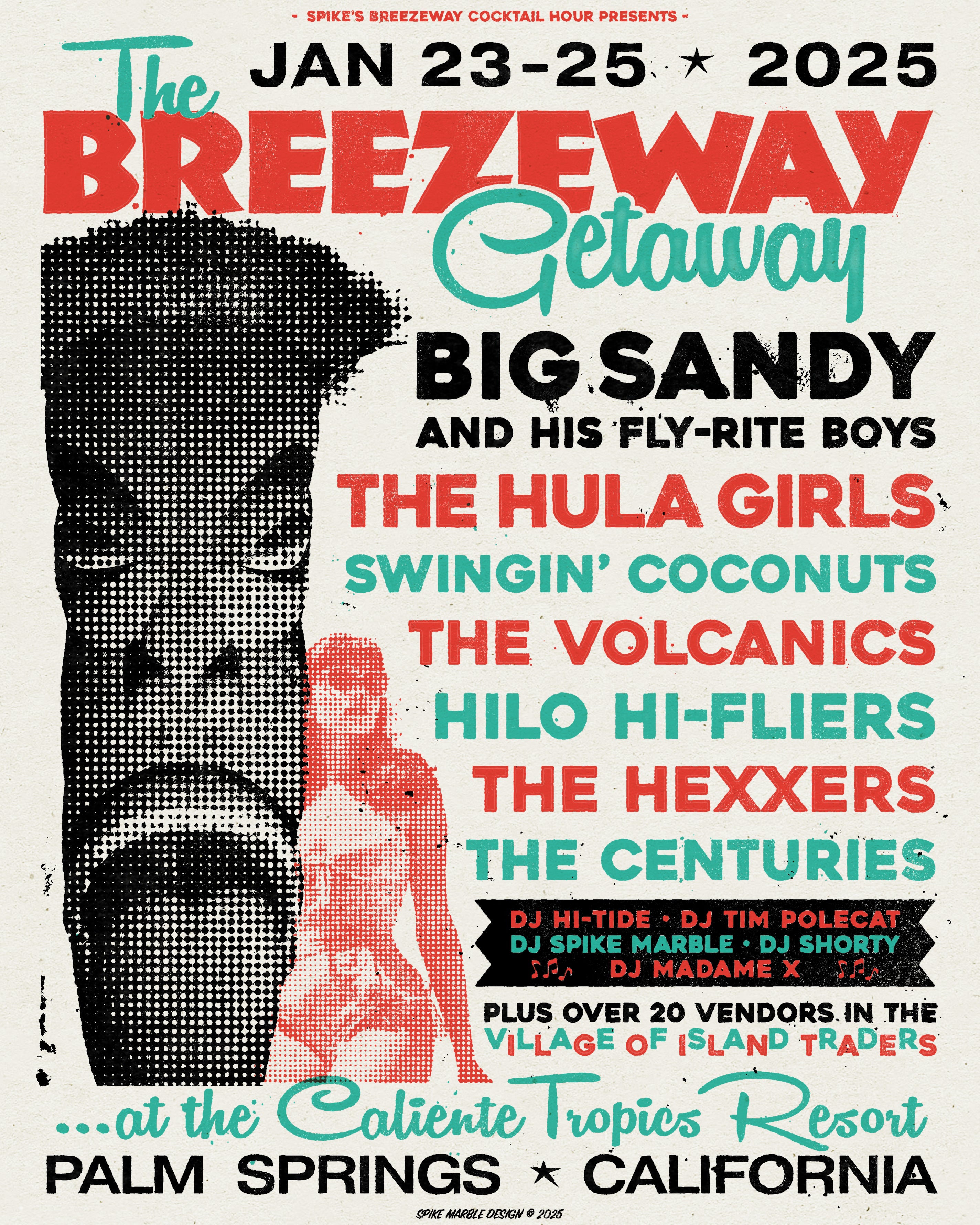 The Breezeway Getaway captures the mystique of mid-century weekenders with the warmth of tiki Ohana. From a meet-and-greet with Spike and stars from The Breezeway Cocktail Hour, to shopping the Village of Island Traders, spirited symposiums, poolside revelry, and nights of music and signature cocktails... every moment is crafted for escape and camaraderie.
