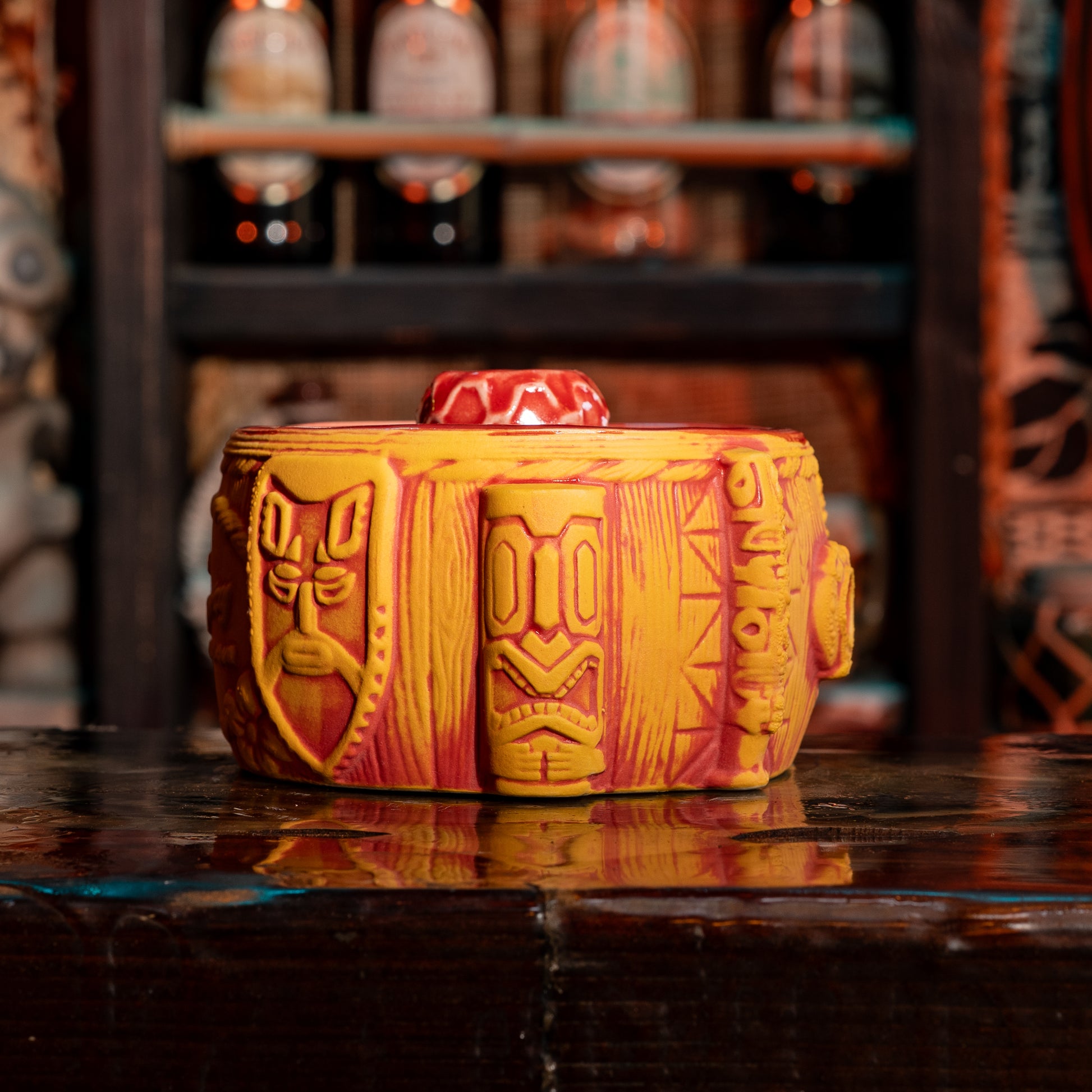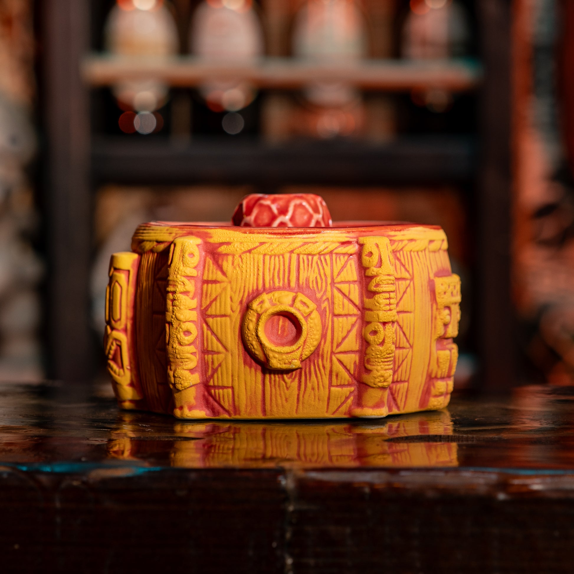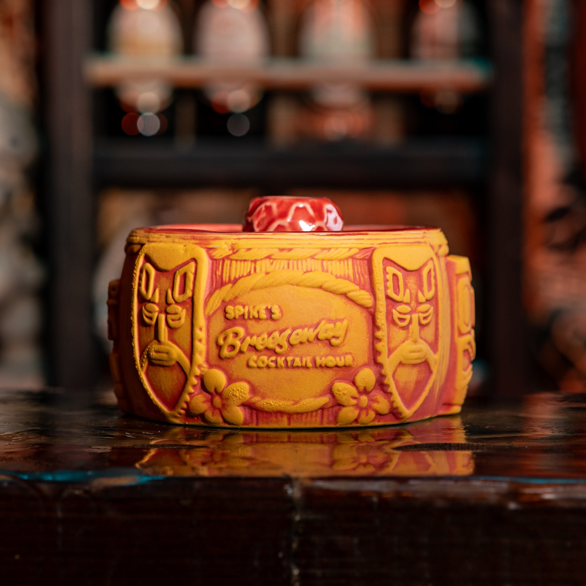 Introducing The Breezeway Bowl, designed by my good buddy Tank and produced by Tiki Farm. This piece is packed with details from the real Breezeway Bar, from the Papua New Guinea shields that hang behind my bar, to the Witco stools, and even my tiki carving that inspired our last Tiki Farm mug.