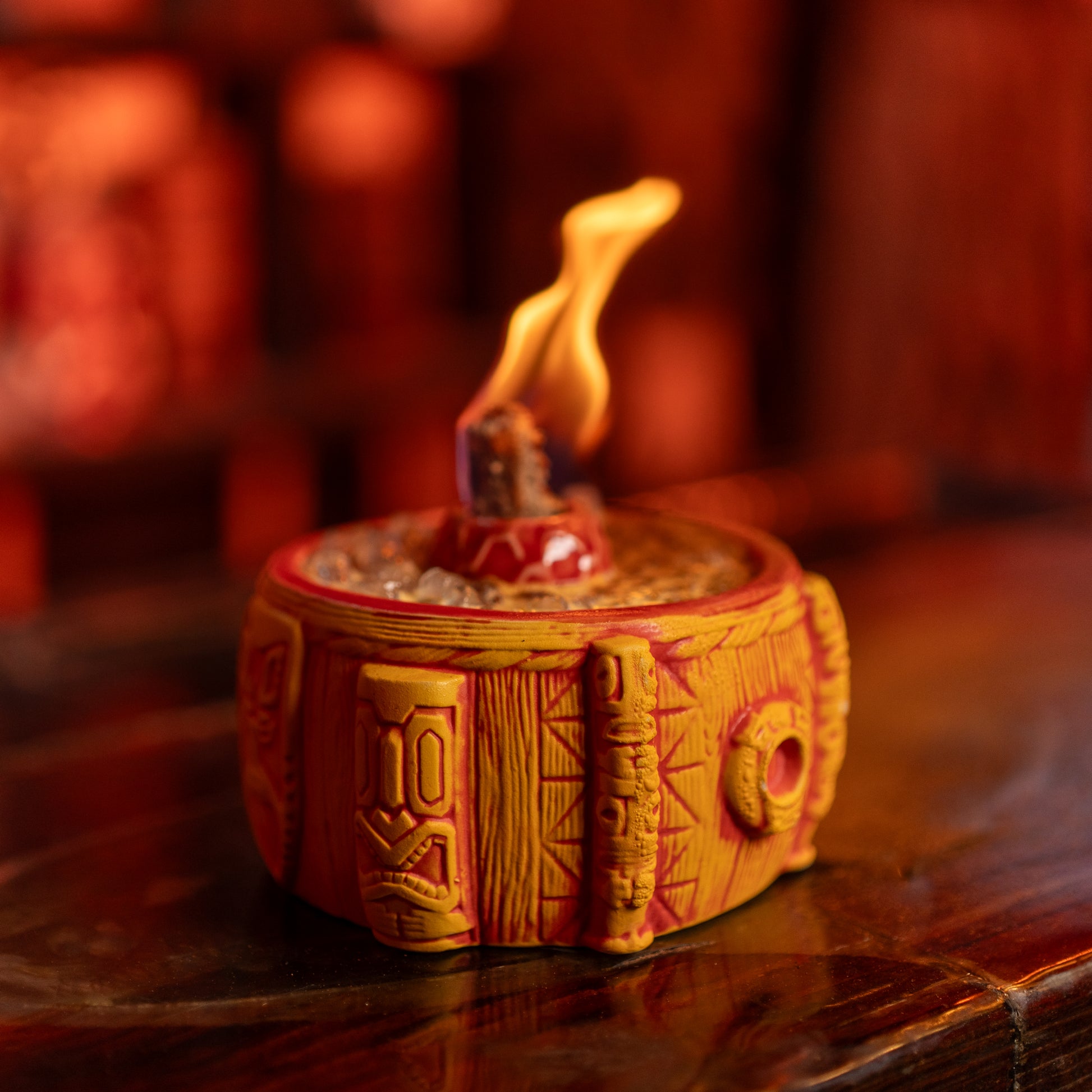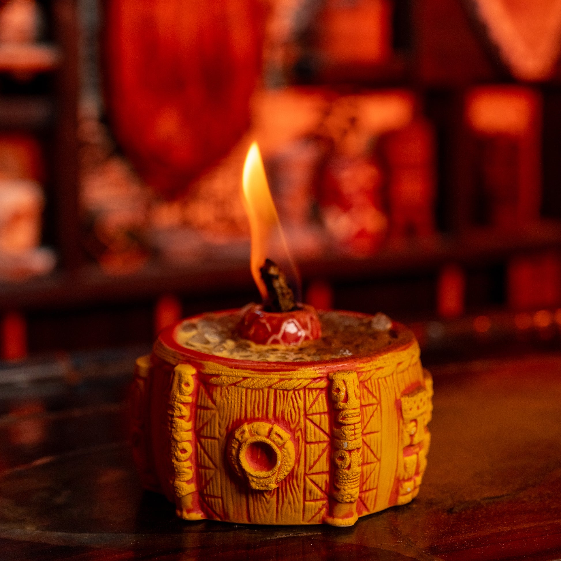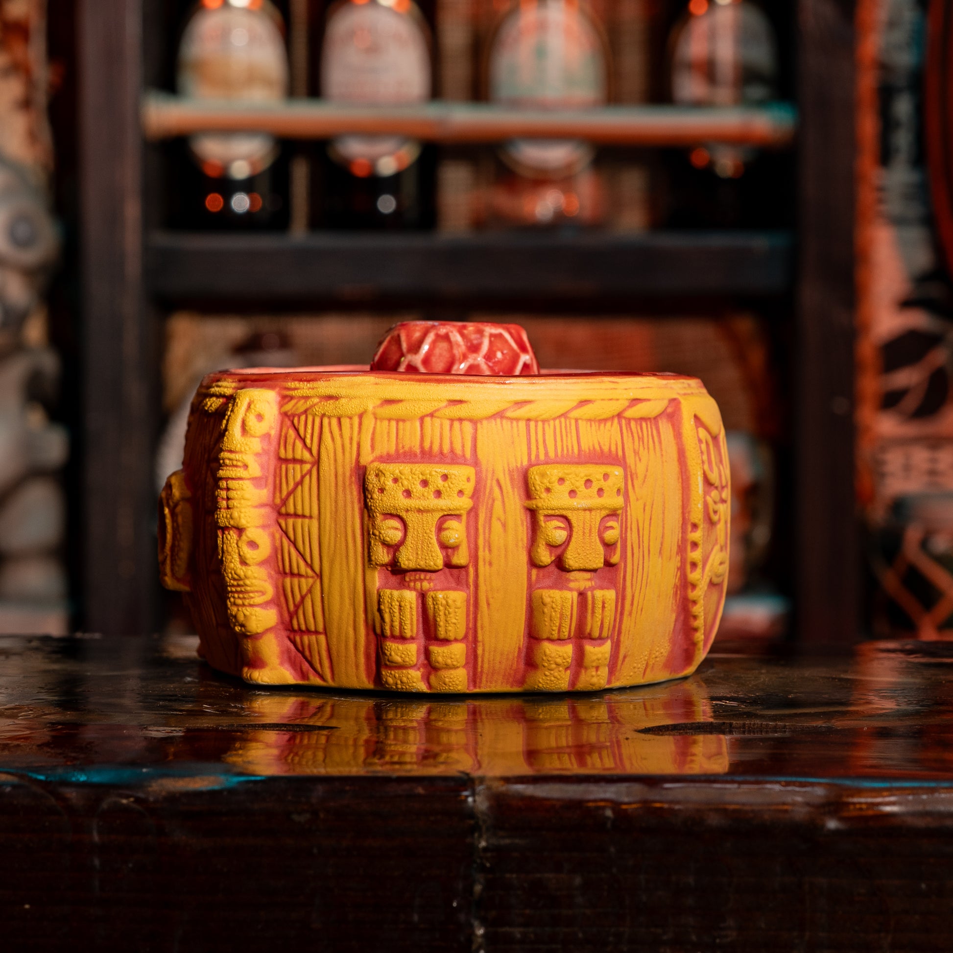 Introducing The Breezeway Bowl, designed by my good buddy Tank and produced by Tiki Farm. This piece is packed with details from the real Breezeway Bar, from the Papua New Guinea shields that hang behind my bar, to the Witco stools, and even my tiki carving that inspired our last Tiki Farm mug.