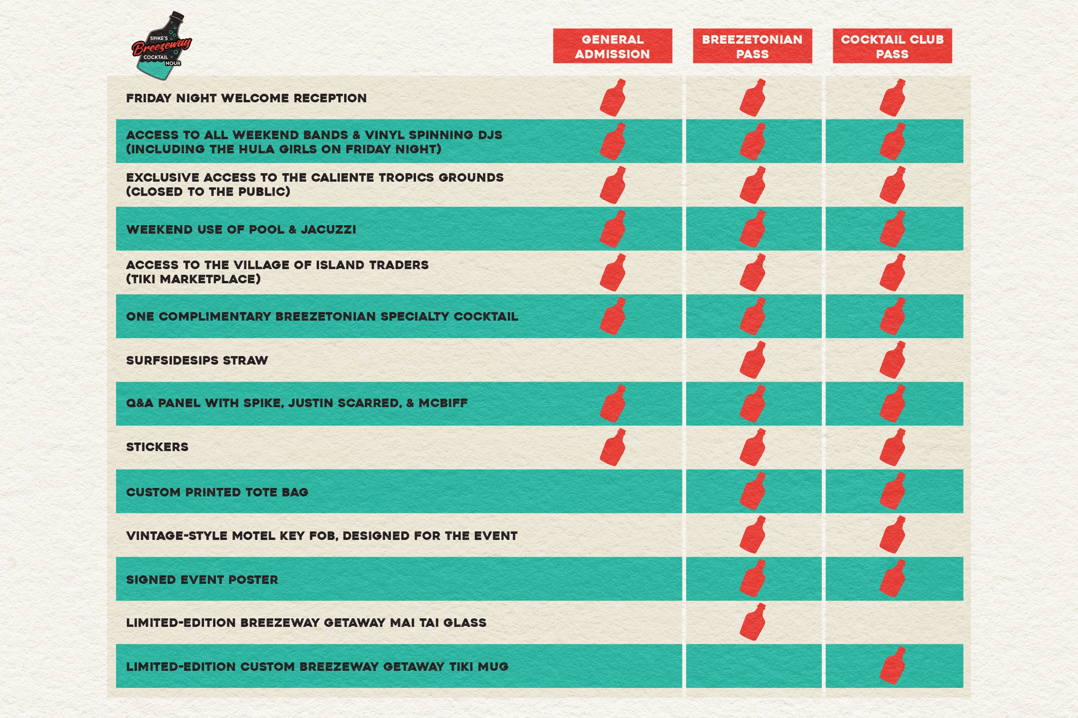 The Breezeway Getaway captures the mystique of mid-century weekenders with the warmth of tiki Ohana. From a meet-and-greet with Spike and stars from The Breezeway Cocktail Hour, to shopping the Village of Island Traders, spirited symposiums, poolside revelry, and nights of music and signature cocktails... every moment is crafted for escape and camaraderie.